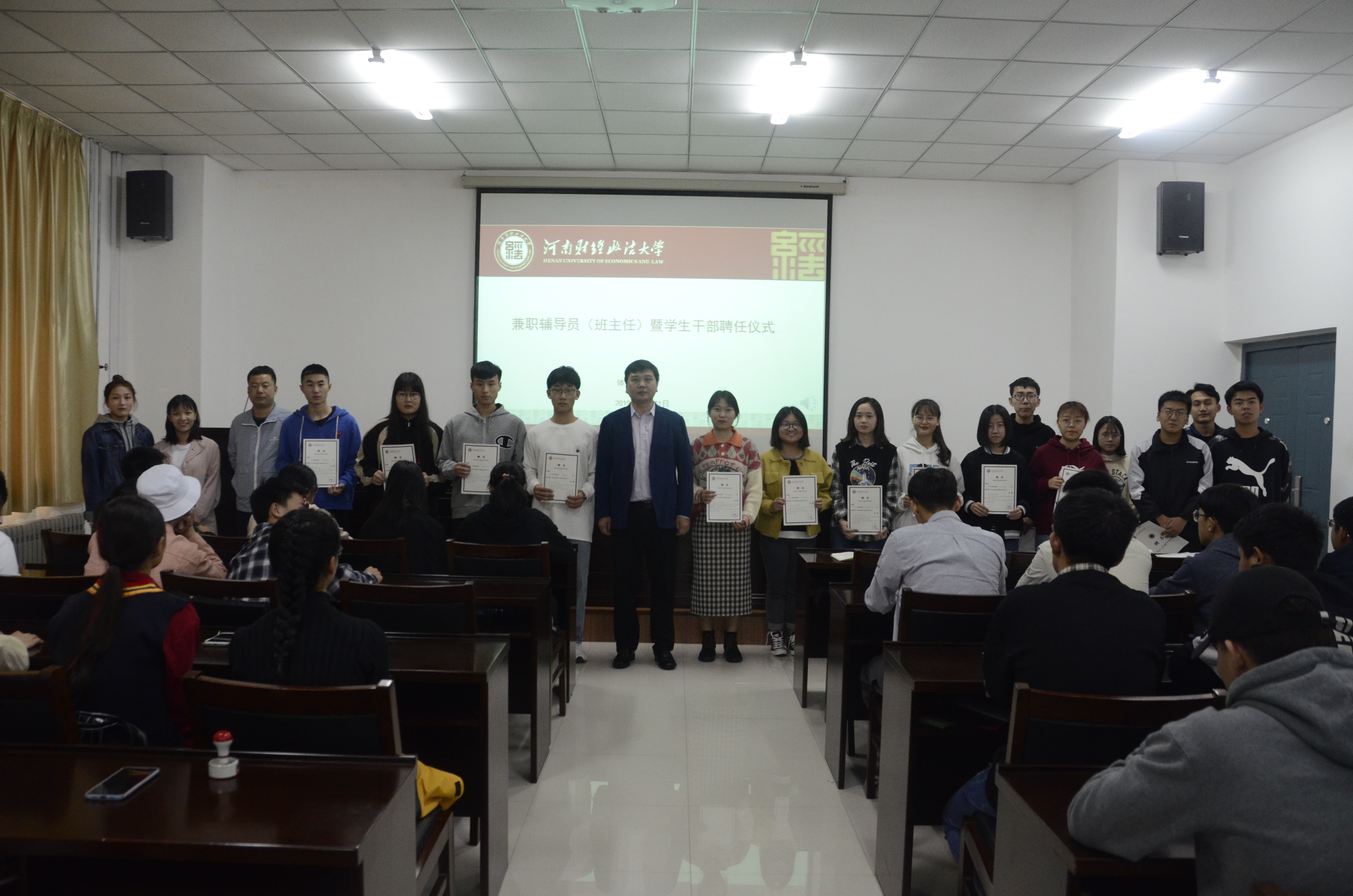 首先,鲁守璞宣读聘任文件,并为兼职辅导员、2019级班主任及主要学生干部颁发聘书。然后,鲁守璞对所有学生干部提出新的要求,要求精细学生干部工作,改进学生干部加分机制,完善评分制度,鼓励学生干部以身作则,发挥模范带头作用。