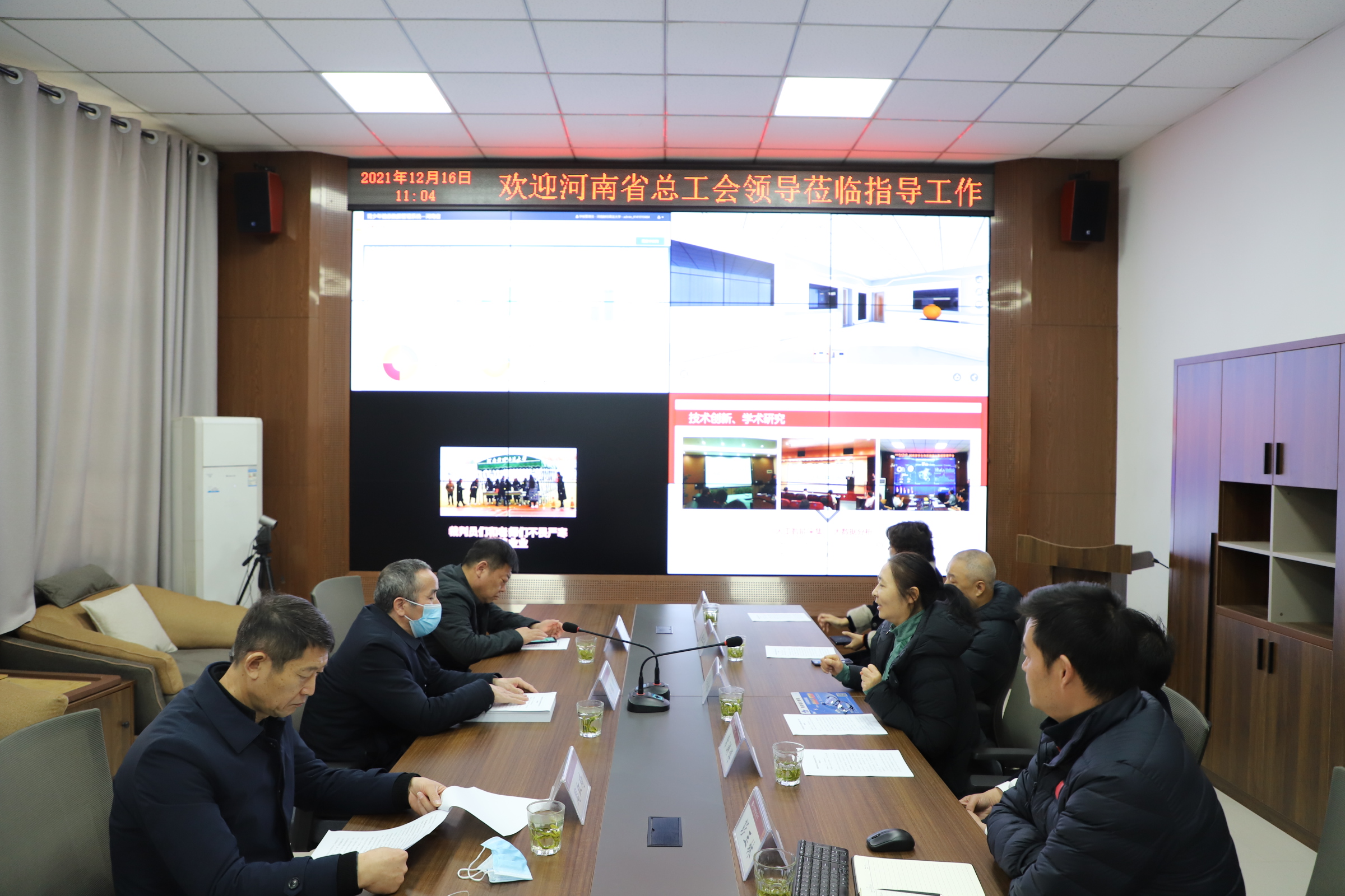 河南省教科文卫体工会二级调研员郑锦顺,校工会副主席朱新力等一行5人,到体育系指导“智慧体育创新工作室”建设工作。在听取了“智慧体育创新工作室”有关情况汇报后,实地考察了相关仪器设备和建设成果。对我系在“智慧体育创新”领域取得的成效,给予了肯定和较高的评价,并对下一步工作开展提出了意见和建议。