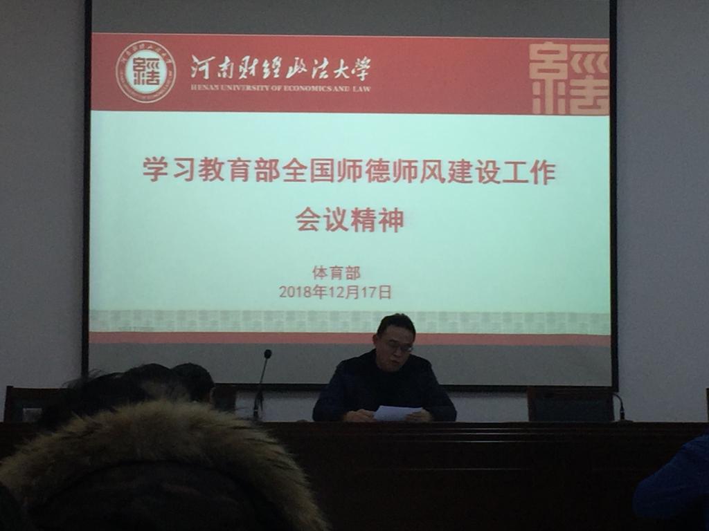 12月17日,体育部召开全体教职工会议,传达教育部全国师德师风建设工作会议精神。