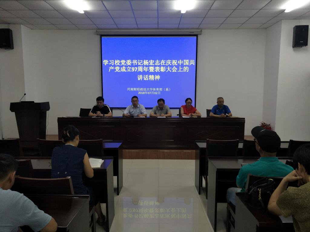为庆祝中国共产党成立97周年,进一步学习贯彻党的十九大、十九届二中、三中全会和习近平总书记系列重要讲话精神,进一步增强党员干部爱岗奉献、强化担当的使命感和责任感,体育部党总支组织网络课堂、专题政治理论学习、集体观影等系列七一党日活动。