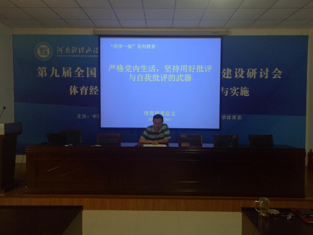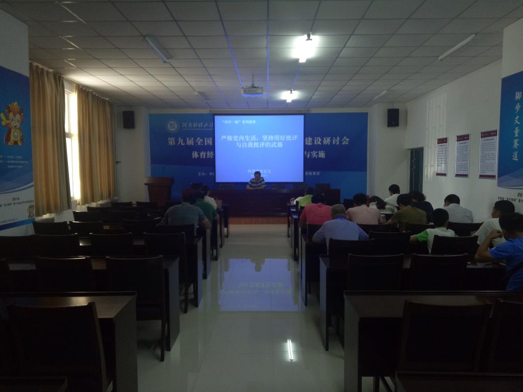 为深入践行“两学一做”专题教育,根据学校“两学一做”学习教育的安排部署和上级部门相关文件的精神要求,6月26日,体育部党总支书记弓永振为全体教师党员上了一堂题为“严格党内生活,坚持用好批评与自我批评的武器”的“两学一做”教育学习专题党课。