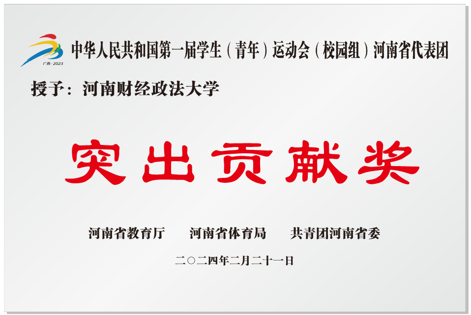 近日,河南省教育厅、河南省体育局、共青团河南省委联合印发《关于表彰我省参加全国第一届学生(青年)运动会(校园组)获奖人员的通报》,我校被授予“突出贡献奖”,领队及教练员团队李观虎、崔伟、马永红、刘国同、张二伟、费征辉、刘东涛、张江浩,科学论文报告第一作者彭玉林、苏亮获通令嘉奖,运动员孙泽豪、刘文昭、王玉鑫、李亚含获通报表扬。