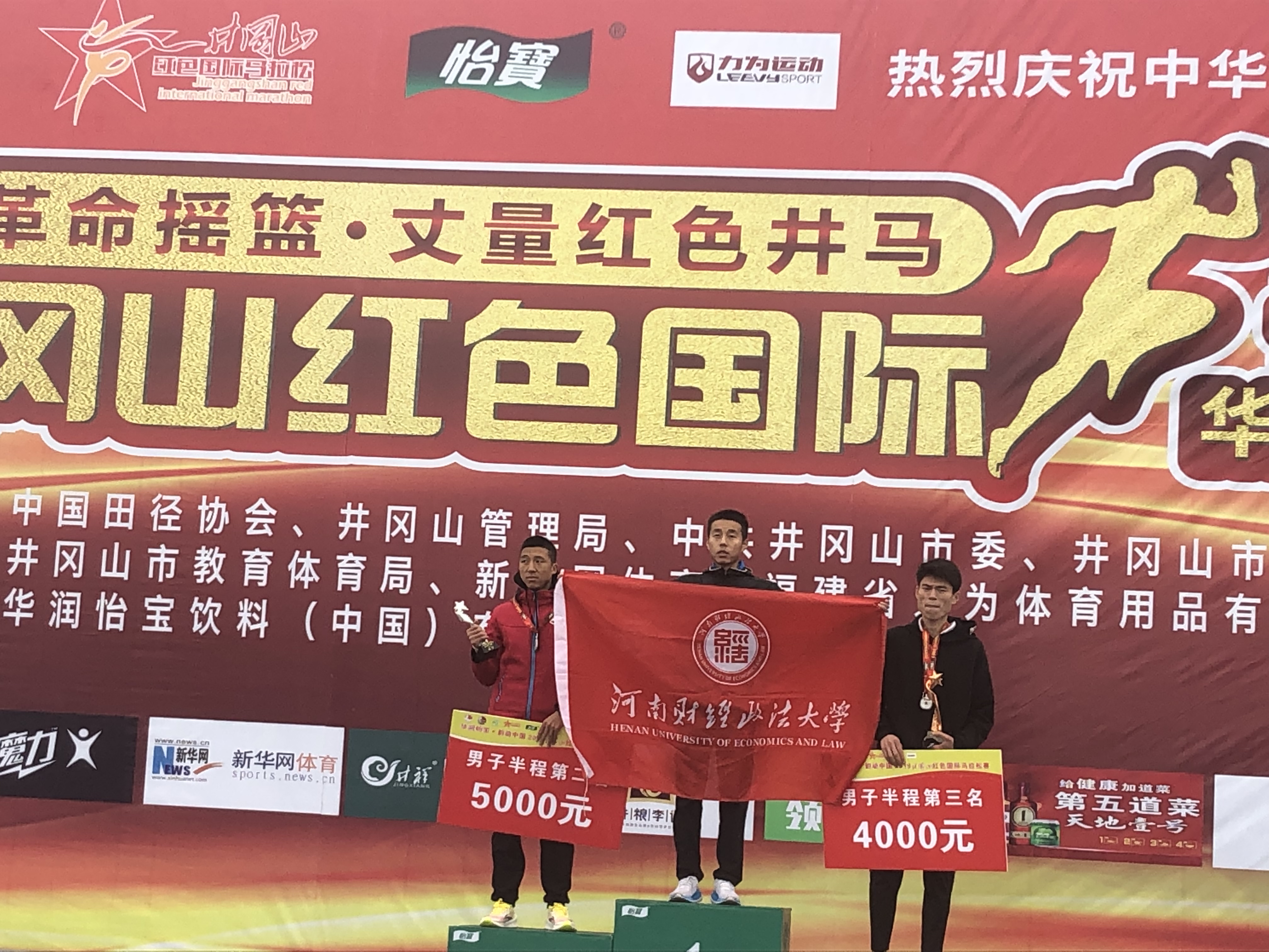 12月1日上午,2019井冈山红色国际马拉松赛在井冈山市红星城区鸣枪开赛。我校学生成敬斋与来自肯尼亚、乌干达、埃塞俄比亚等10个国家万名选手同场竞技,经过顽强拼搏,最终以1小时09分02秒成绩获得半程马拉松赛男子组第一名,再一次把我校的校旗带上最高领奖台,受到国内多家媒体关注和采访。成敬斋在接受媒体采访时说;“参加此次比赛就是为了重温红色革命基地,践行“不忘初心、牢记使命”主题教育精神,用拚搏的汗水把学校的校旗展现在红色大地之上是我的心愿。这充分展现了我校学子的爱国情怀和为校争光的精神品质。