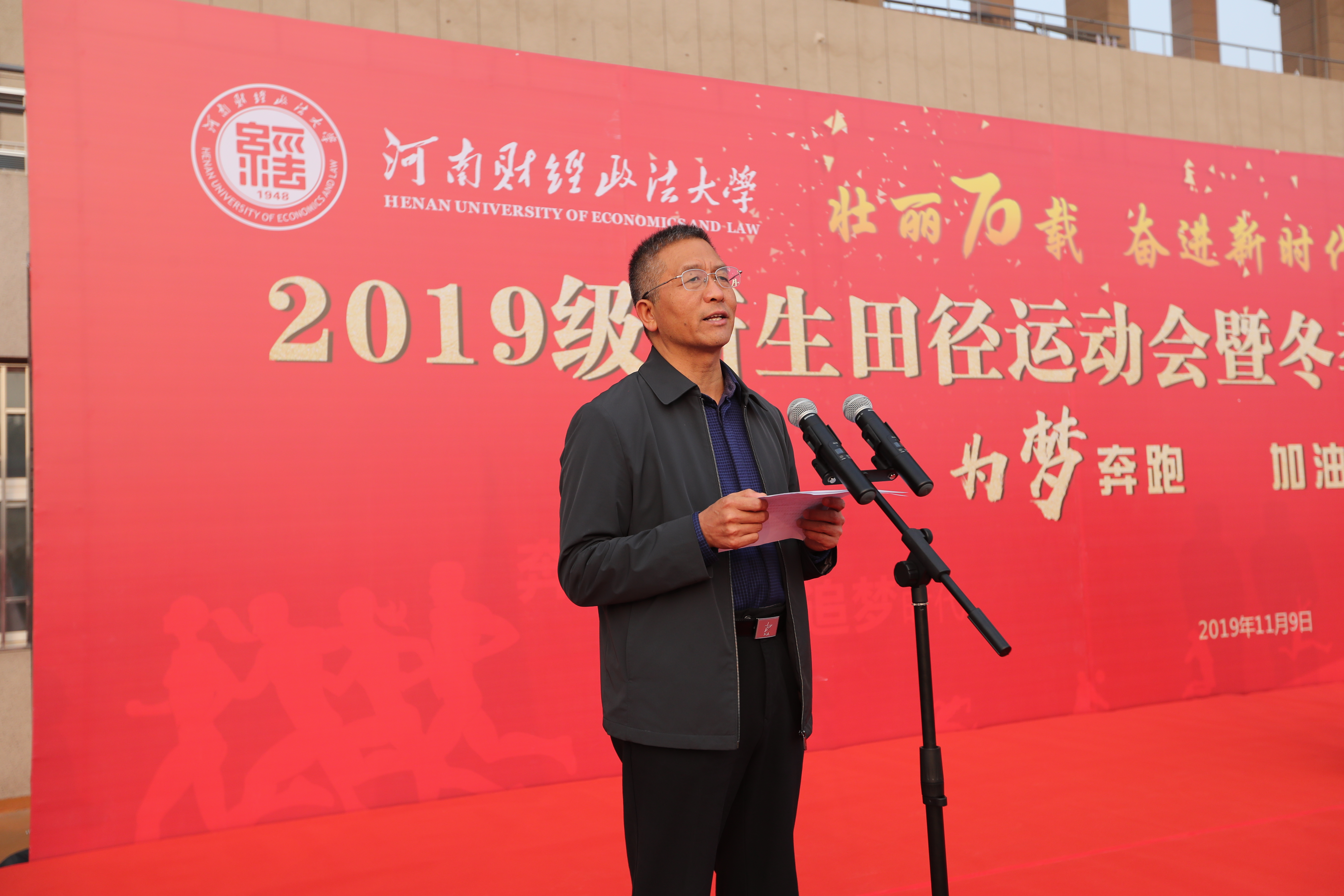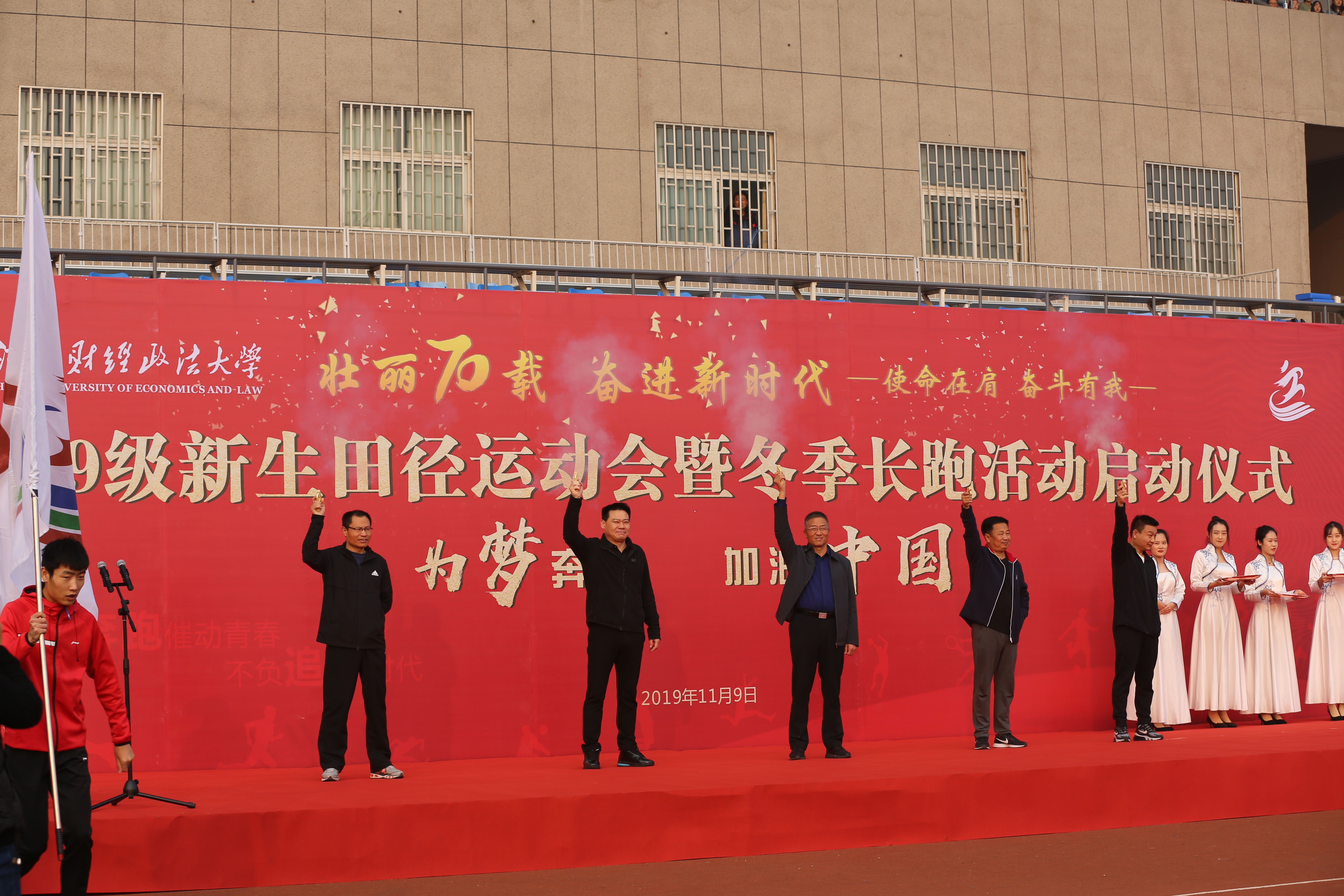 为庆祝祖国七十年华诞,全面推进健康校园、文明校园建设,深入践行“人人有项目、班班有活动、院系有特色、社团有组织、天天有锻炼、周周有安排、月月有赛事、年年有创新”的校园体育文化理念,11月9日,2019级新生田径运动会暨冬季长跑活动启动仪式在学校东体育场顺利召开。 本次活动主题为“为梦奔跑,加油中国”,赛事口号为“使命在肩,奋斗有我”。