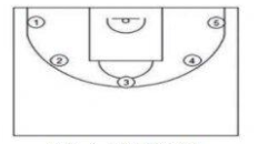 篮球场上地上的标志①②③为40cm为半径的圆圈。①③几率端线为6米,到边线距离为2米。②在中线上距离中圈中心点2.8米。