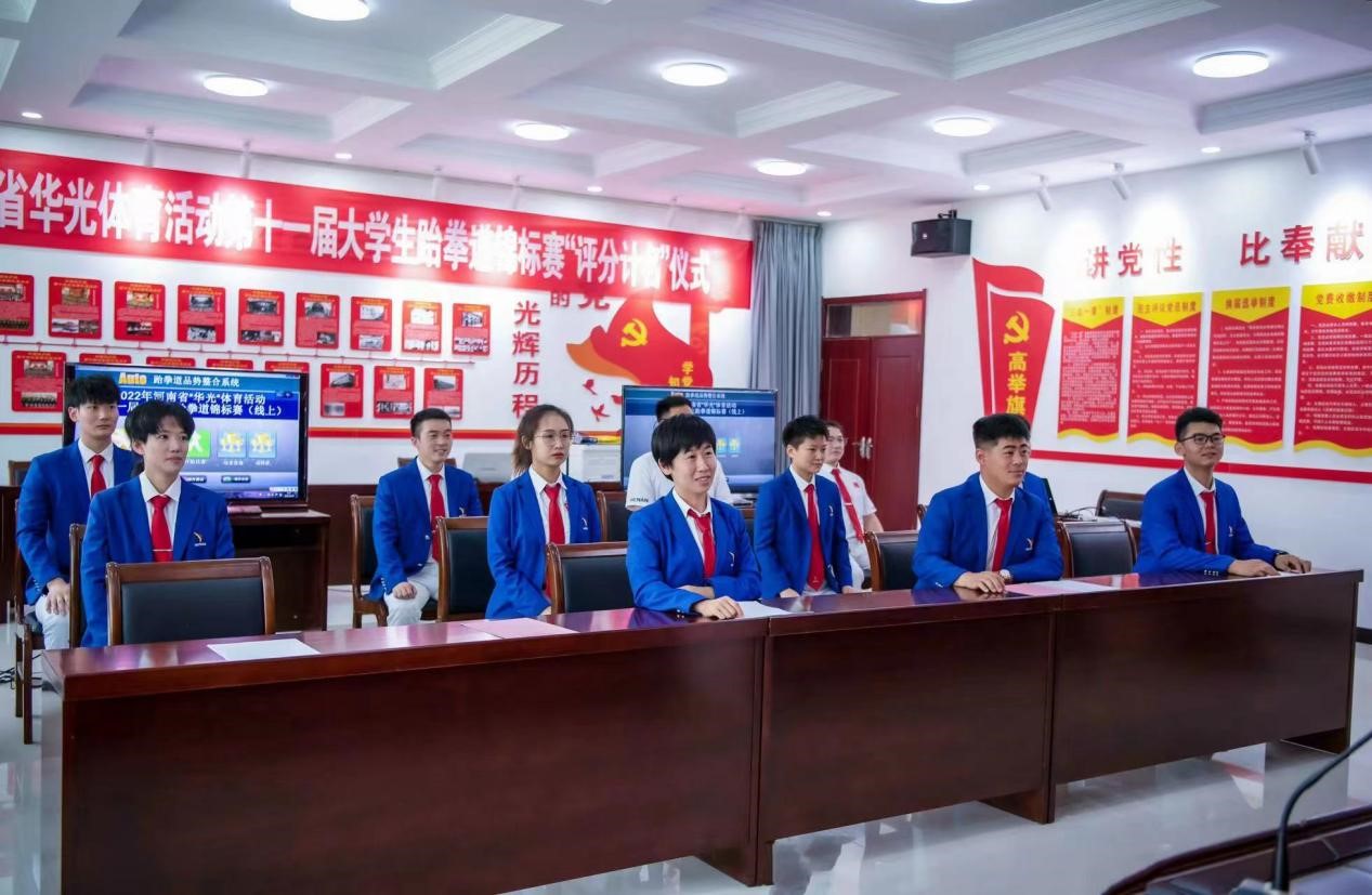 由河南省教育厅主办、河南省学生体育总会跆拳道协会执行的“河南省大学生‘华光’体育活动第十一届跆拳道锦标赛(线上)”于2022年6月27日至29日在平顶山职业技术学院举行(评分)。本次比赛共吸引了50余所省内高校,600余名运动员参赛。我校跆拳道队共派出15名运动员参赛,共获得3金7银3铜,3个第四,1个第五的好成绩!