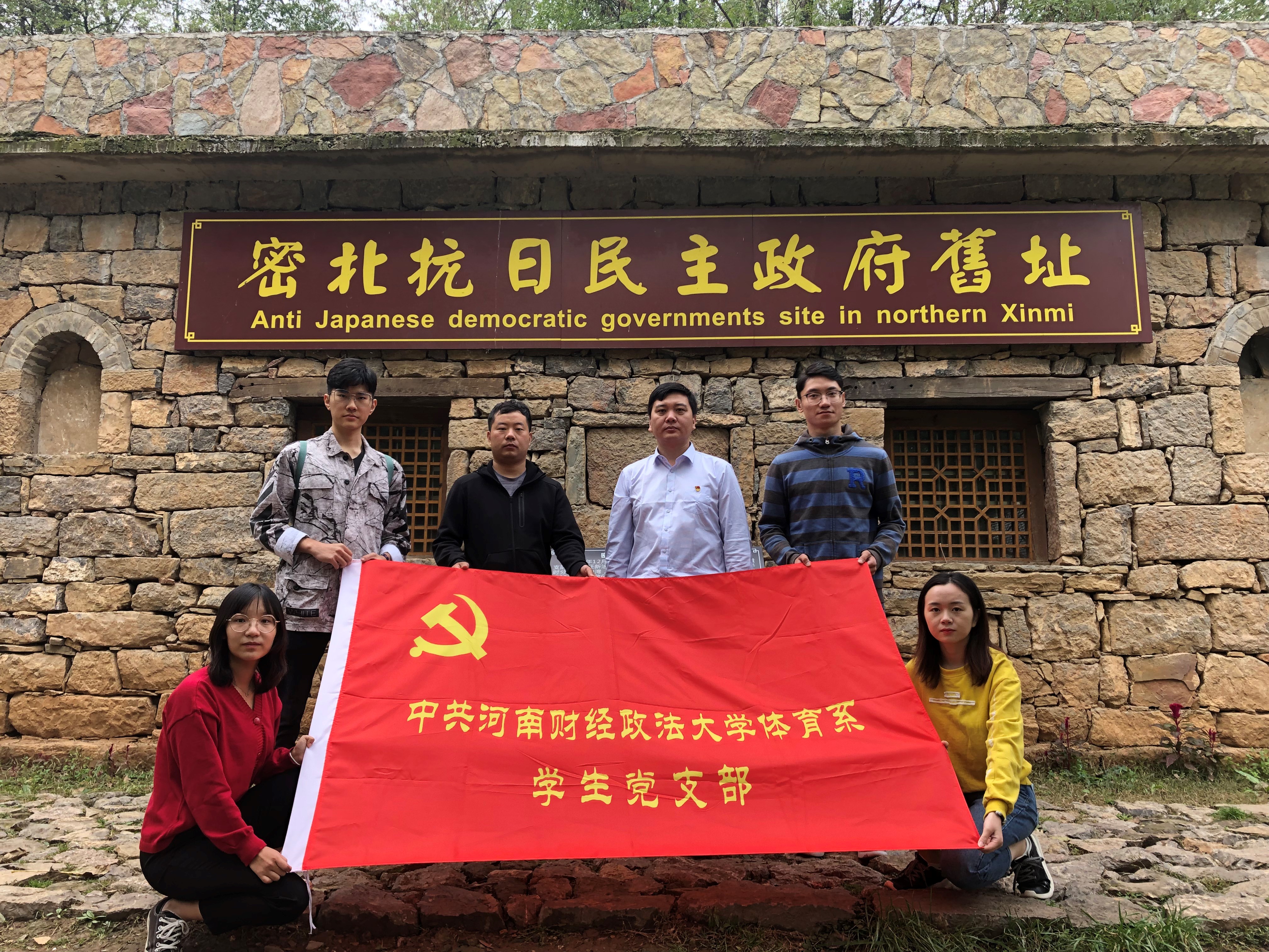 为学习贯彻习近平新时代中国特色社会主义思想和党的十九大精神,紧密结合“两学一做”学习教育、“不忘初心、牢记使命”主题教育,充分发挥我系学生党支部在学习生活实践中的模范带头作用。2019年10月13日,体育系学生党支部全体成员赴河南豫西抗日纪念园开展以“缅怀先烈,不忘初心”的党日活动。