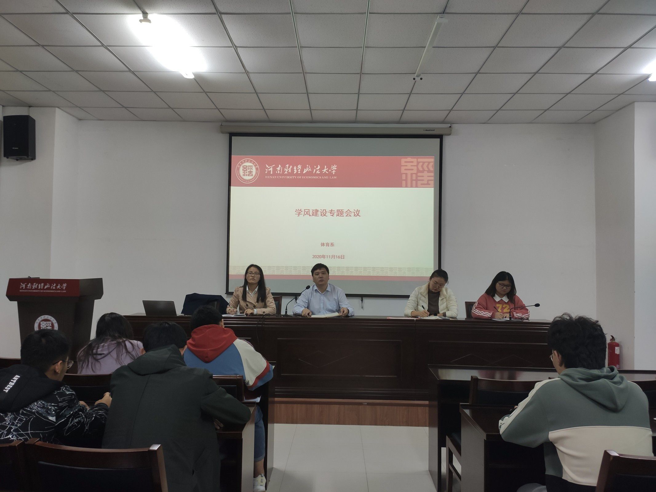 11月16日,我系于会议室召开体育系学风建设专题会议,该会议由体育系党总支副书记鲁守璞主持,系团总支书记仝晗笑,兼职辅导员昝笑笑、谢红琳出席,全体学生参加。