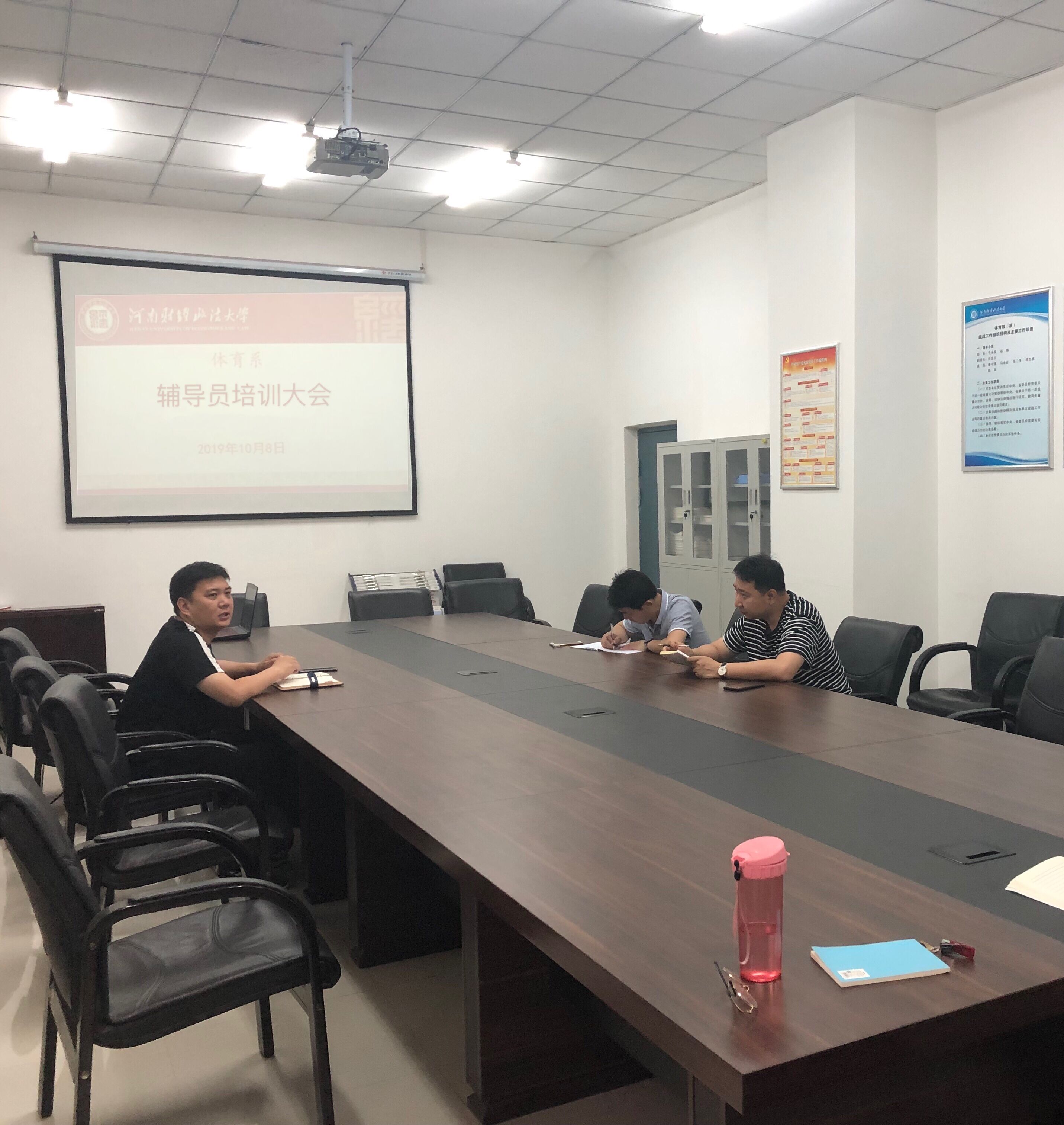 为切实提高辅导员工作水平和综合能力,我系于5月18日下午,在会议室召开了辅导员专题培训会。体育系党总支副书记鲁守璞担任主讲,辅导员张颜皓、兼职辅导员徐君伟参加了此次培训会。