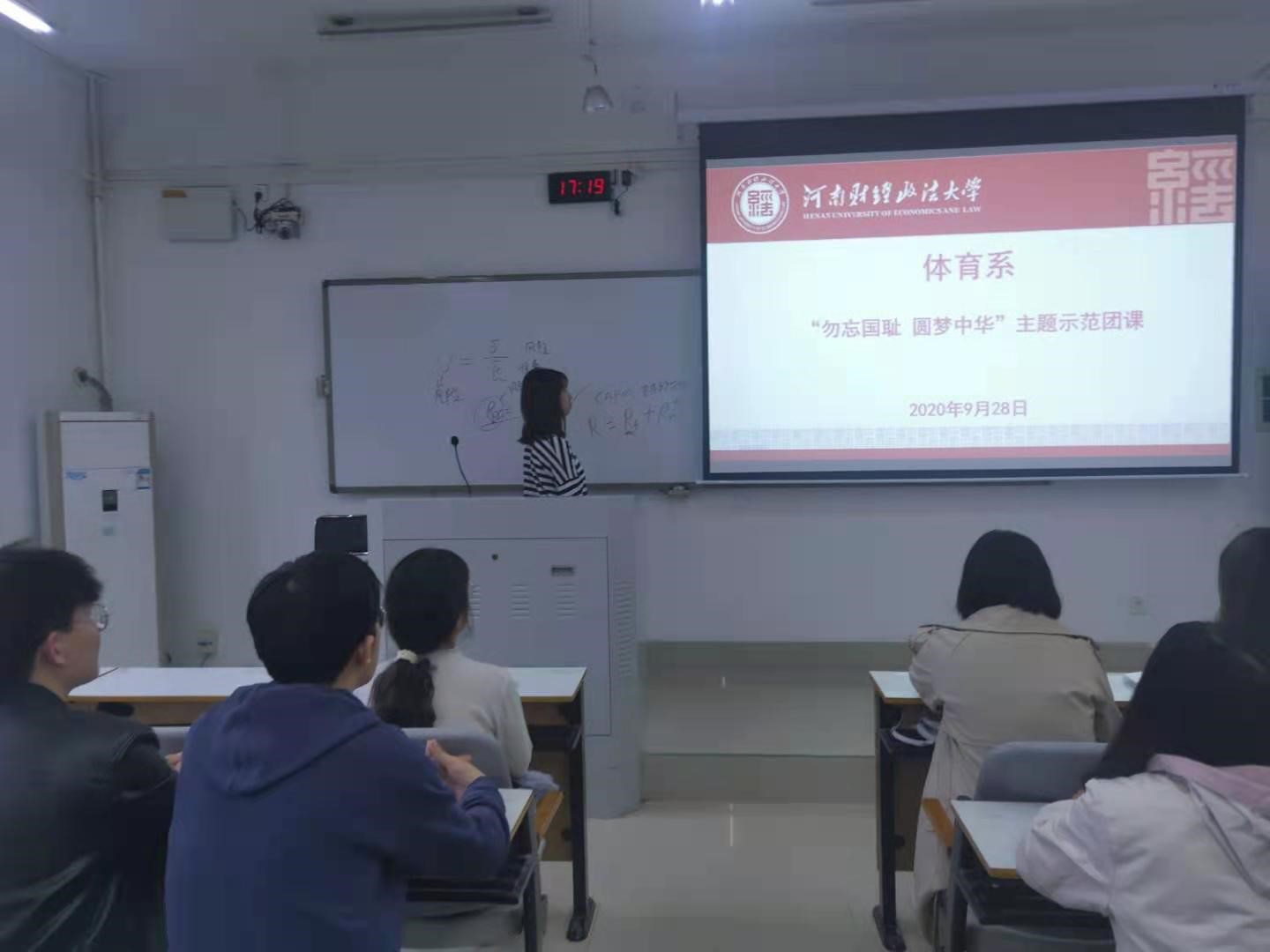 为深切缅怀革命先烈的光辉业绩,弘扬爱国主义精神,激发广大团员热爱祖国和家乡的热情,时值中国人民抗日战争胜利纪念日,体育系于9月下旬以团支部为单位,开展了“勿忘国耻,圆梦中华”为主题的中国人民抗日战争胜利纪念日示范团课活动。
