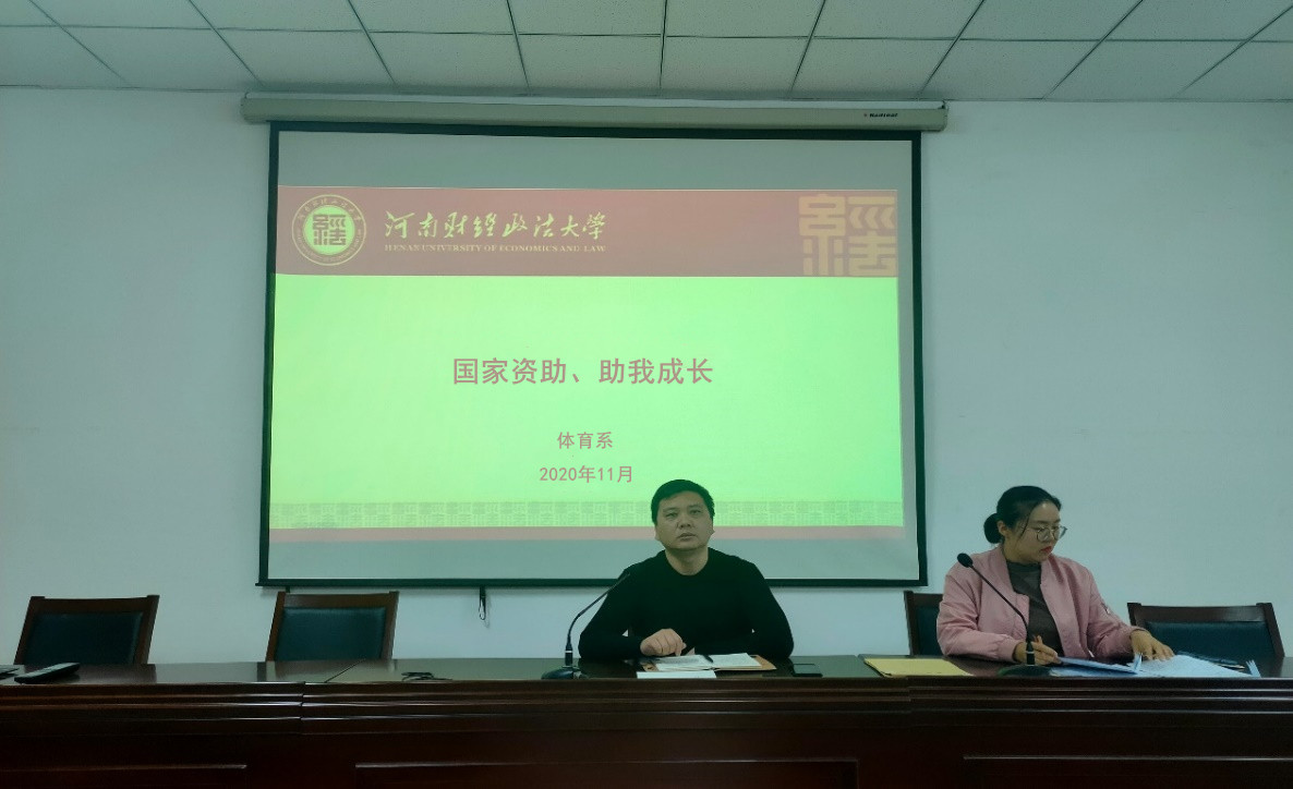 11月2号,为充分体现国家学生资助政策的人本情怀,我系在体育系会议室召开会议。出席本次会议的有体育系党总支副书记鲁守璞、系团总支书记仝晗笑和全体学生参会。