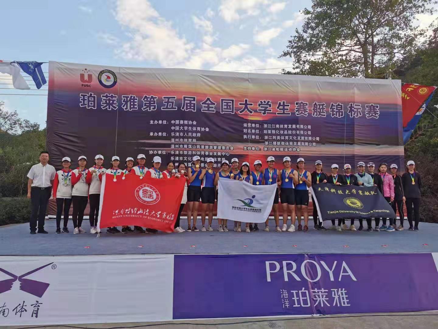 我校代表队19人参加此次比赛。我校赛艇队参加全部四个项目的比赛,在“女子1000米八人单桨有舵手”中取得第二名;在“男子1000米八人单桨有舵手”中取得第二名。最终我校赛艇队团体总分名列第三。
